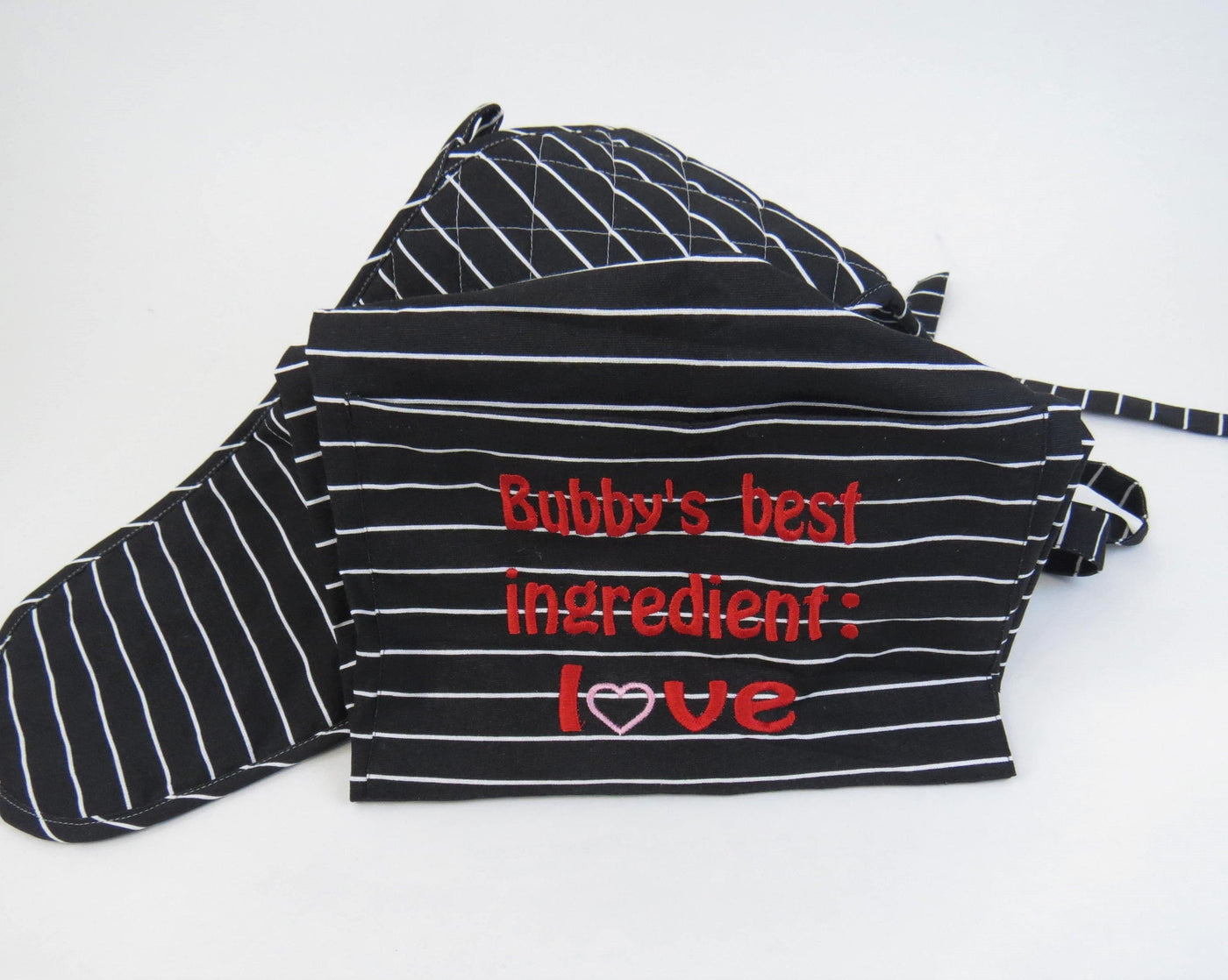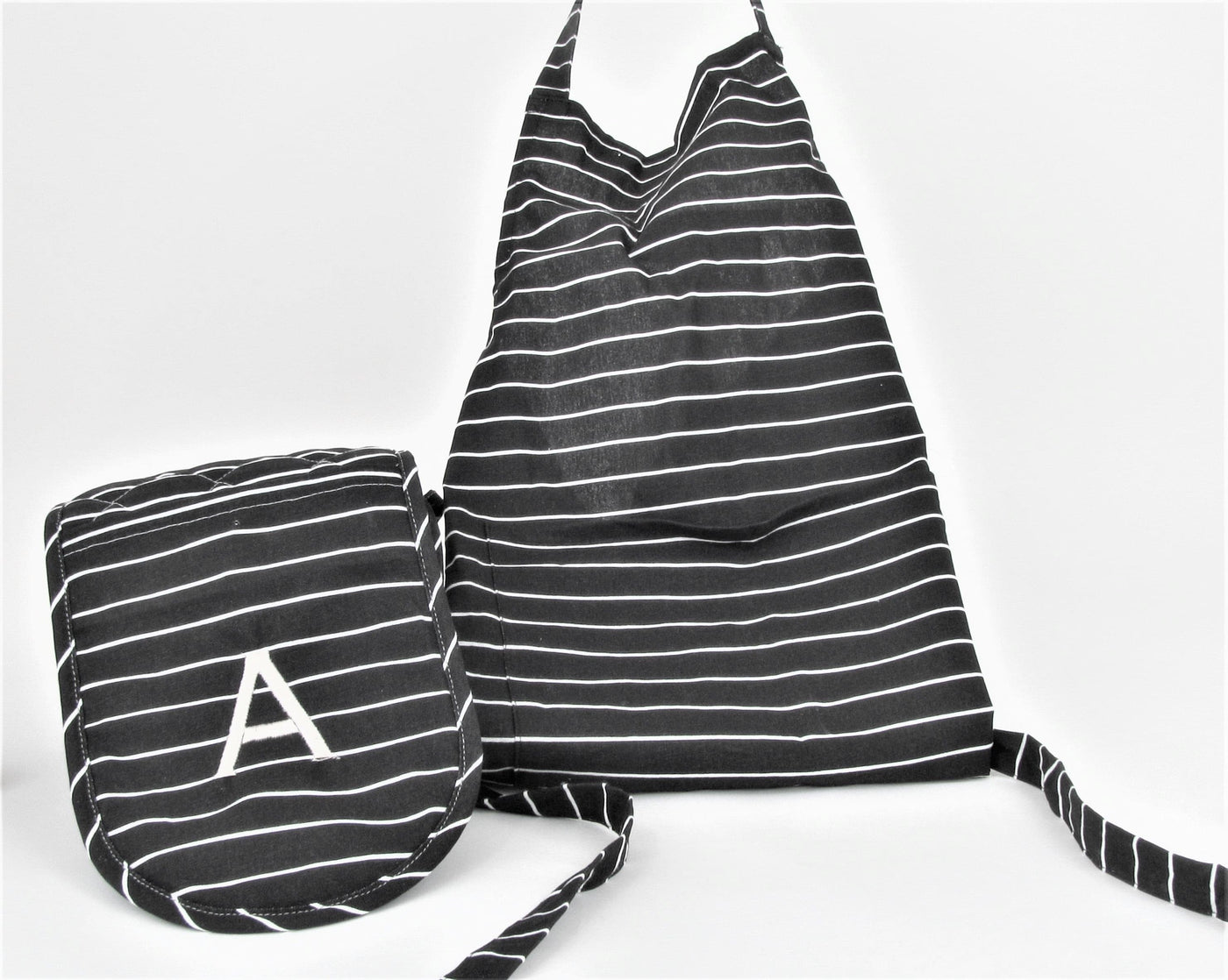 Inform when this item available Monogrammed Black and White Apron and Mitts Set