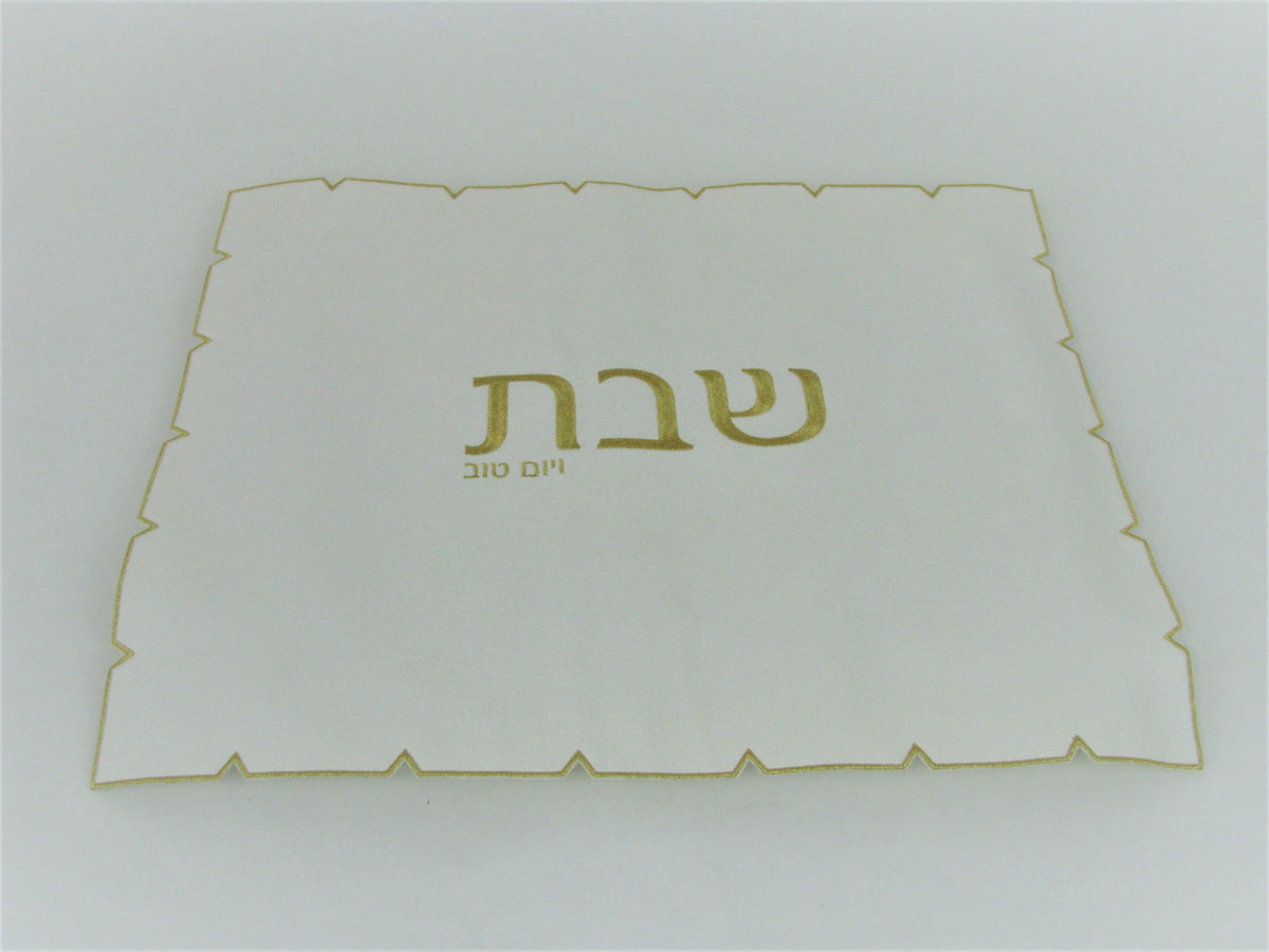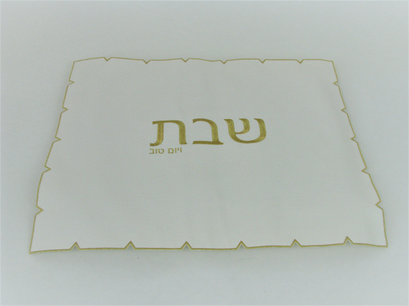 Leatherette Challah cover with classic embroidery and detailed laser-cut edge design. This is made of high quality and supple leatherette. Popular gift idea!