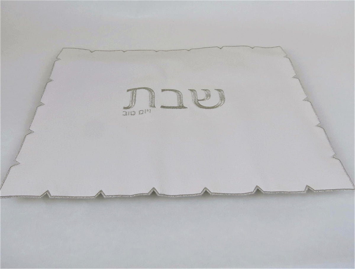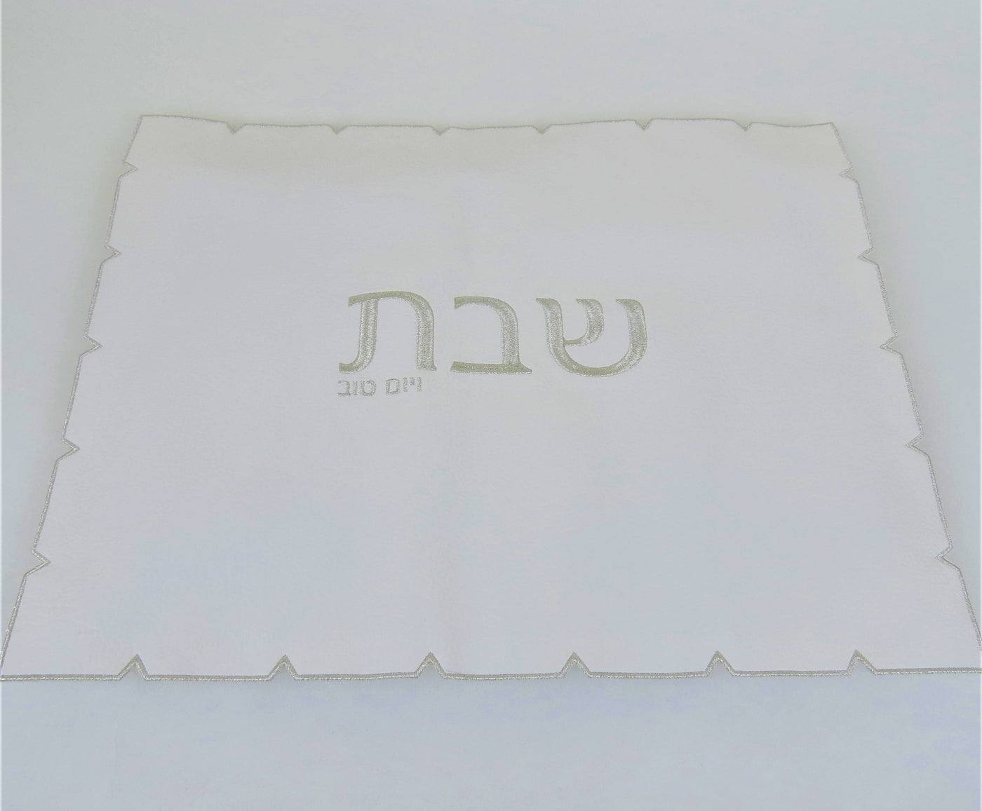 Leatherette Challah cover with classic embroidery and detailed laser-cut edge design. This is made of high quality and supple leatherette. Popular gift idea!